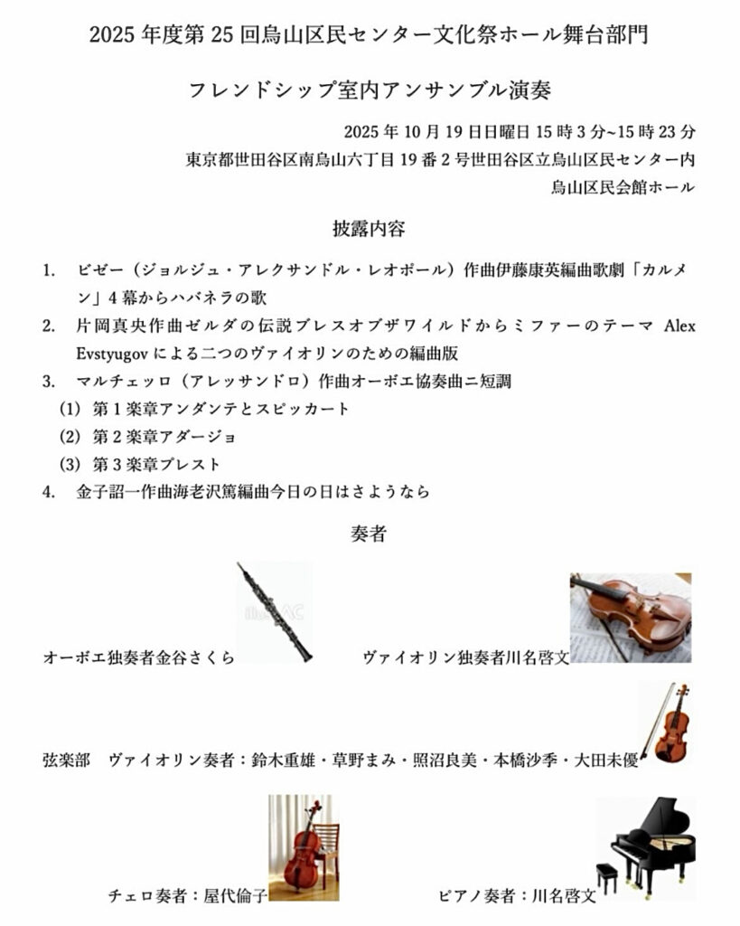 10/19(日)マルチェロ オーボエ協奏曲 @烏山区民センター