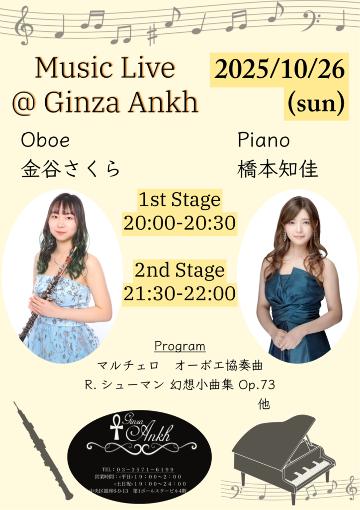 10/26(日)Oboe Piano Duo Live @銀座アンク