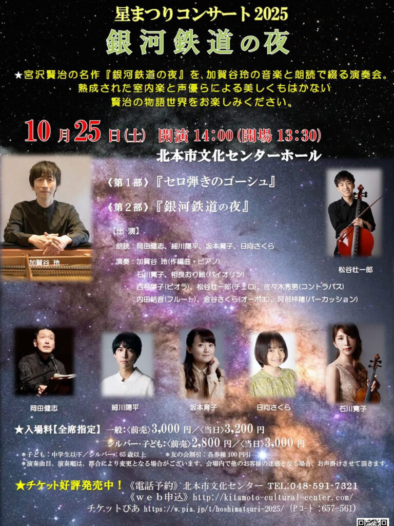10/25(土)「セロ弾きのゴーシュ」「銀河鉄道の夜」